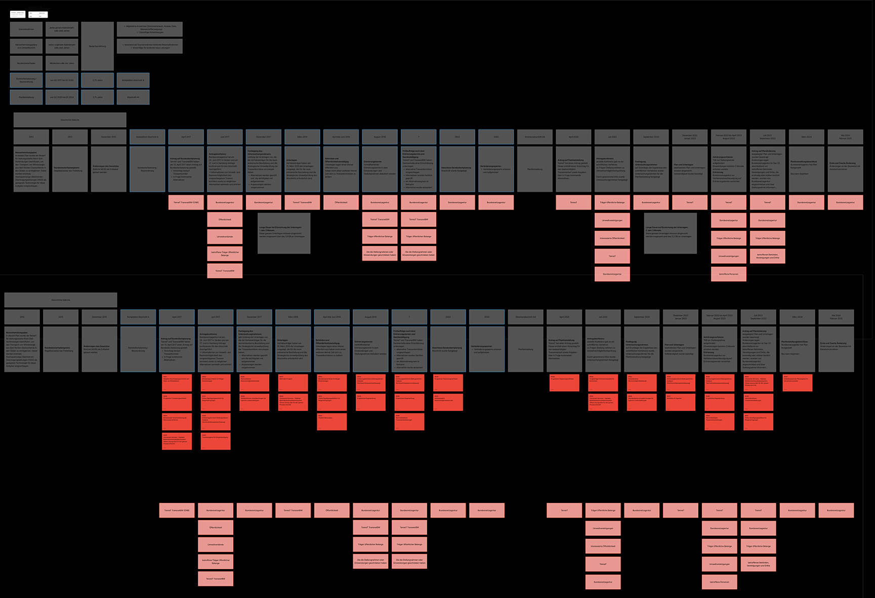 Die Arbeit identifiziert 40 zentrale Problempunkte bei Genehmigungen, Zuständigkeiten, Koordination und Akzeptanz im deutschen Übertragungsnetzausbau. Eine eigens entwickelte System Map zeigt den gesamten Prozess von der Bedarfsermittlung bis zur Umsetzung und legt strukturelle Brüche offen.